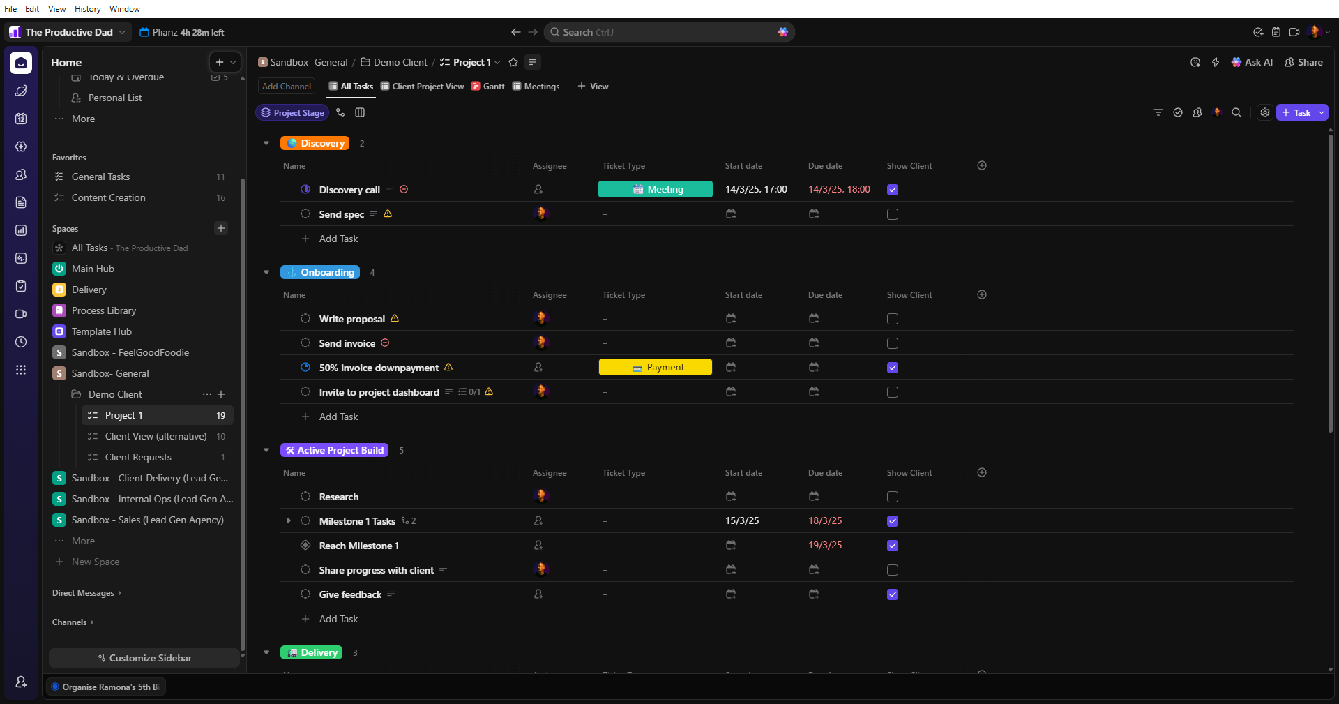 ClickUp is a productivity and project management tool. I have a side business called The Productive Dad where I help small businesses use ClickUp to create systems so simple, a fifth grader could run their business.